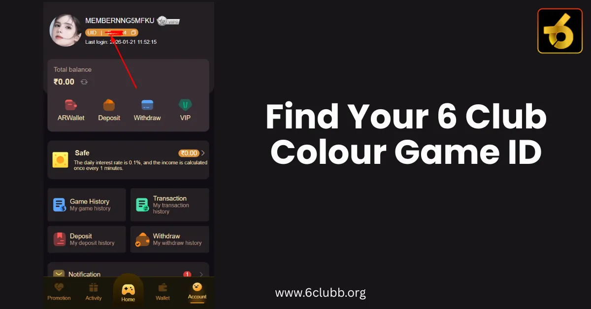 This is the most common way. Open your 6 Club app or website. Log in using your ID and password from the 6 Club Game login. Once you are inside, go to your profile or menu. You will see your account details, wallet, and other options. Your game ID is written under your profile name or beside your avatar. Write it down or take a screenshot so you do not forget it later.
